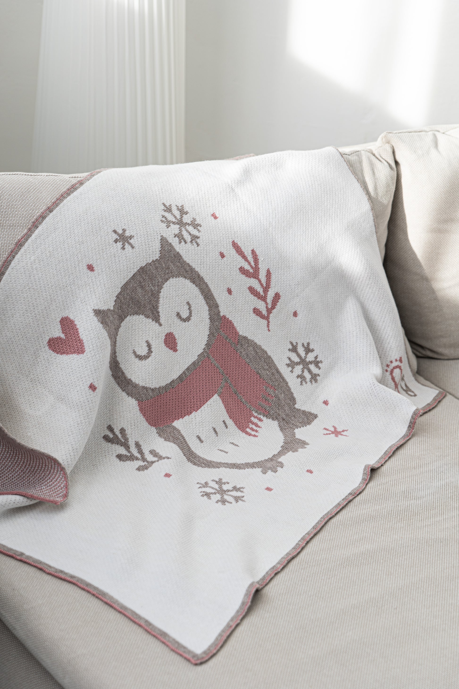 KALĖDINIS MERINO VILNOS PLEDUKAS | ROŽINĖ PELĖDA