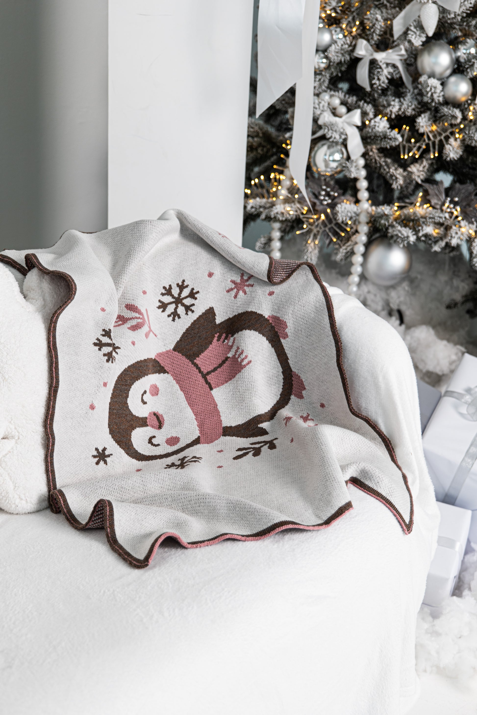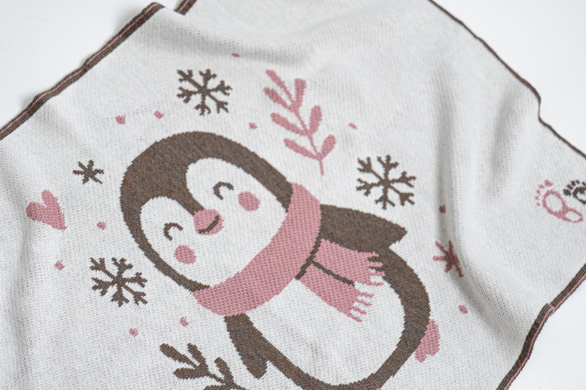 KALĖDINIS MERINO VILNOS PLEDUKAS | ROŽINIS PINGVINAS