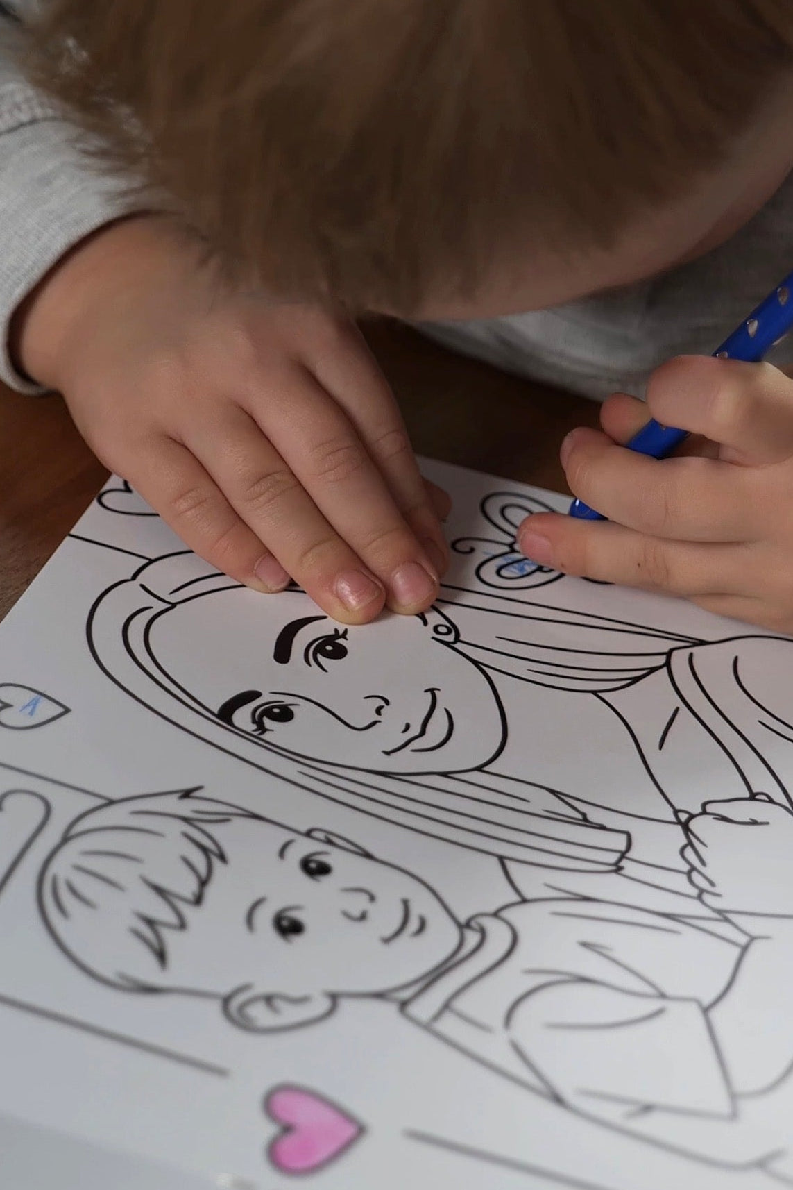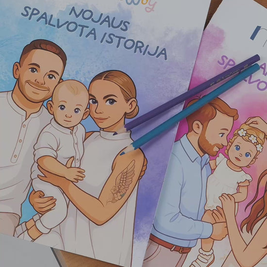 Kiekviena knygutė kuriama individualiai, pagal jūsų atsiųstas nuotraukas. Mes jas paverčiame mielais iliustracijų puslapiais, kuriuos vaikas gali nuspalvinti.